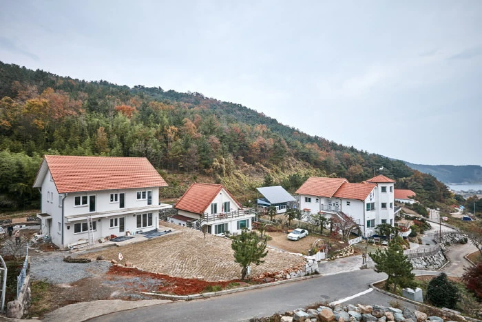 건축은 교포들이 직접 독일의 재료를 수입하여 전통 독일식 주택을 신축하고 있는데 지금은 15동 정도가 완공되어 독일 교포들이 생활하고 있으며 독일에 가 있는 동안은 관광객을 위한 민박을 운영하고 있기도 하다. 바로 앞으로 펼쳐진 방조어부림의 시원한 바다와 남해안에서 가장 아름다운 해안 드라이브 코스인 물미해안도로가 있다.